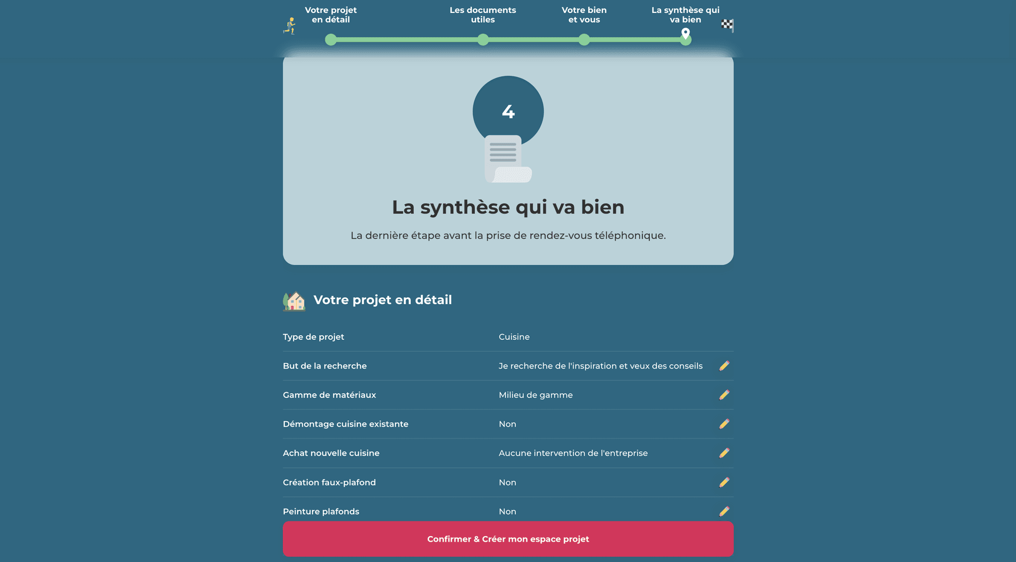 One of our cornerstone products was the onboarding questionnaire, serving as the gateway to the user journey after perusing our landing page. This questionnaire held significant importance as a primary driver for user acquisition. Given the inherently intricate nature of construction projects, especially in historic cities like Paris with their diverse and non-standardized apartment layouts, customization was paramount.
