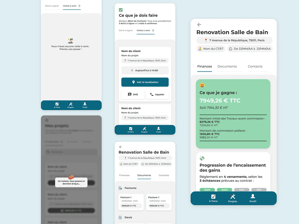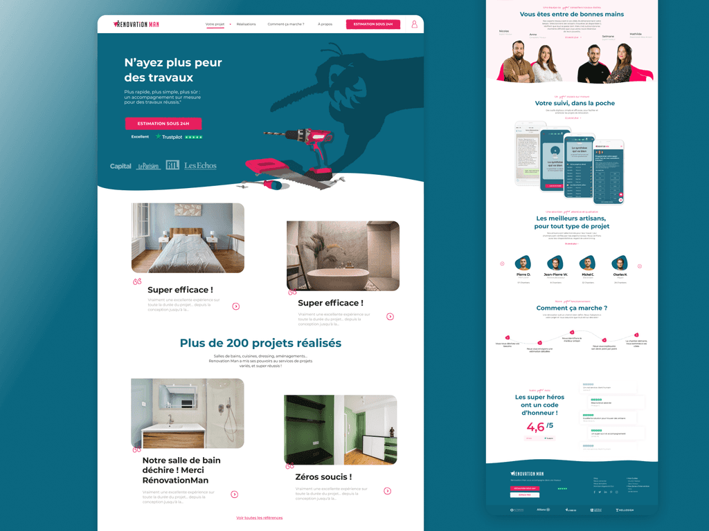 While working for Renovation Man, I oversaw the UX/UI aspects for 4 distinct products, catering to both our collaborators and end-users. These products included: